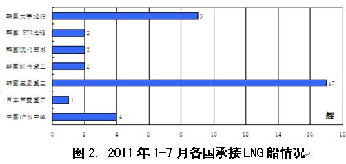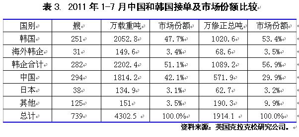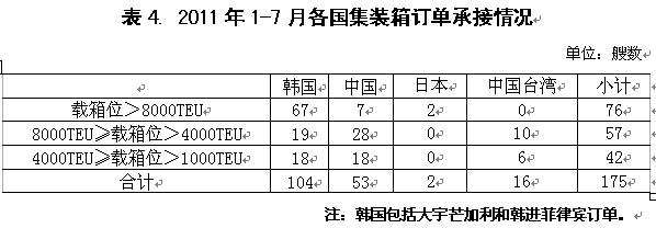 2011年1-7月國際造船市場新船需求總量同比出現(xiàn)大幅下滑,但需求結(jié)構(gòu)朝高技術(shù)高附加值船型轉(zhuǎn)變,受此影響,全球船舶市場競爭格局也發(fā)生顯著變化。從影響行情發(fā)展主要因素看,無論是經(jīng)濟(jì)發(fā)展、航運(yùn)市場供求關(guān)系,還是船舶融資市場狀況,下半年出現(xiàn)明顯改觀的難度很大,船舶市場面臨形勢更加復(fù)雜嚴(yán)峻。