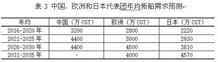 總體市場來看,“十三五”期間,全球經(jīng)濟緩慢復(fù)蘇,海運量增長乏力,新船需求將出現(xiàn)明顯萎縮。專家一致認為,年均新船需求在3300萬修正總噸以下。不過,隨著世界經(jīng)濟復(fù)蘇,新船需求將有所回升。