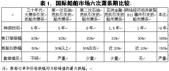 任何人均無(wú)法準(zhǔn)確無(wú)誤地預(yù)測(cè)本次船市蕭條期的長(zhǎng)短。目前,由于還存在太多的不確定性因素,使得我們無(wú)法確定本次后危機(jī)時(shí)期的經(jīng)濟(jì)走向。我們認(rèn)為,船市蕭條的終結(jié)有賴于前幾年船市高度興旺過(guò)程中積聚成的兩大泡沫【一是6.4億載重噸船舶手持訂單(2008年9月歷史最高位),二是2億載重噸造船產(chǎn)能】的擠出;世界經(jīng)濟(jì)及早復(fù)蘇并不一定能有效縮短航運(yùn)蕭條期,加速拆解老舊船舶和大量撤銷造船訂單才能使航運(yùn)市場(chǎng)提前復(fù)蘇;而造船市場(chǎng)供求關(guān)系的改善不僅要靠新船訂單量明顯增加,更有賴于全球過(guò)剩造船能力的處置。但是,大量拆解船舶對(duì)船東并不輕松,而造船訂單被大量撤銷和大幅度處置過(guò)剩造船能力對(duì)船廠造成的極大困難也是不言而喻的。至于本次船市蕭條持續(xù)時(shí)間,我們認(rèn)為船市蕭條期起碼要比世界經(jīng)濟(jì)金融危機(jī)長(zhǎng),即使世界經(jīng)濟(jì)出現(xiàn)復(fù)蘇,傳導(dǎo)至船舶市場(chǎng)還需要一段時(shí)間,最樂觀估計(jì)本次船舶市場(chǎng)蕭條期持續(xù)時(shí)間至少在7-8年,如果世界經(jīng)濟(jì)不能持續(xù)有效復(fù)蘇,世界造船市場(chǎng)蕭條持續(xù)時(shí)間將更長(zhǎng)。
